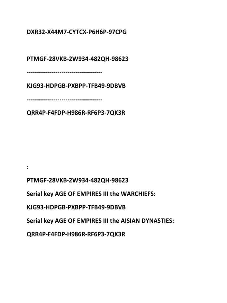 Serial Key Age Of Empires Iii Ptmgf 28vkb 2w934 482qh 98623 Serial Key Age Of Empires Iii The Warchiefs Kjg93 Hdpgb Pxbpp Tfb49 9dbvb Serial Key Age Of Empire Cinta Adalah