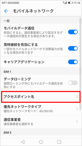 Android スマートフォン Huawei P10 Lite Was Lx2j ネットワーク設定手順 Mineoユーザーサポート