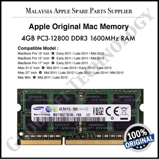 New Original Apple Macbook Pro Imac Mac Mini 4gb 8gb Pc3 12800 Ddr3 1600mhz Mac Memory Ram Upgrade Shopee Malaysia